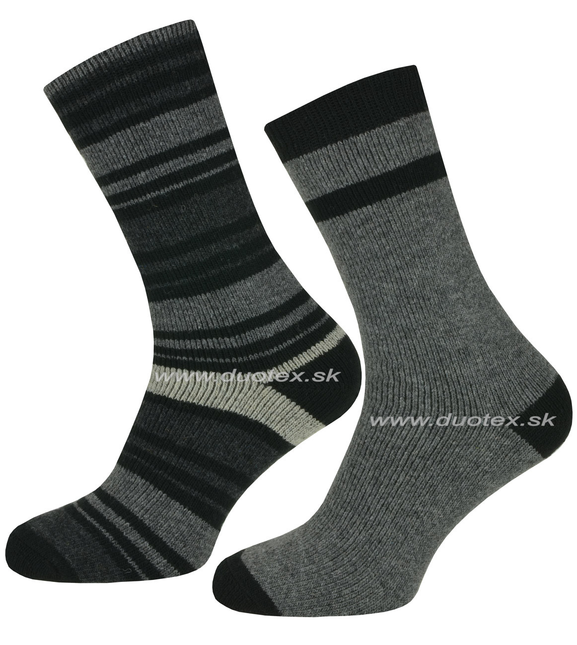 Pánske teplé, celofroté zimné ponožky s prídavkom vlny. Dvojpack sa skladá z dvoch párov ponožiek rôznych vzorov a farieb - viď. obrázok.