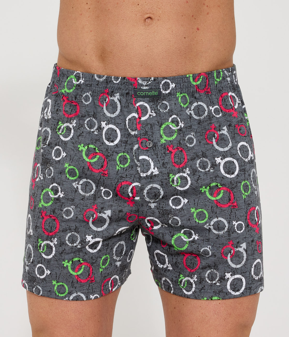 Pánske boxerky voľnejšieho strihu so širokou všívanou gumou a gombíkom v rozkroku pre maximálne pohodlie pri ich nosení. Sú vyrobené z úpletu z kvalitnej 100% bavlny, ktorá je mäkká a príjemná na dotyk. Sú vhodné aj ako Valentínsky darček.