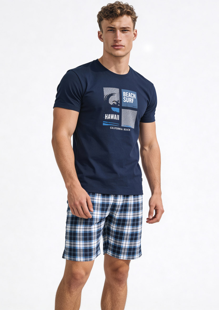 Pyžamo pre starších chlapcov s krátkym rukávom a krátkymi nohavicami. Pyžamo je vyrobené zo 100% bavlneného úpletu a v páse má všívanú širokú gumu.