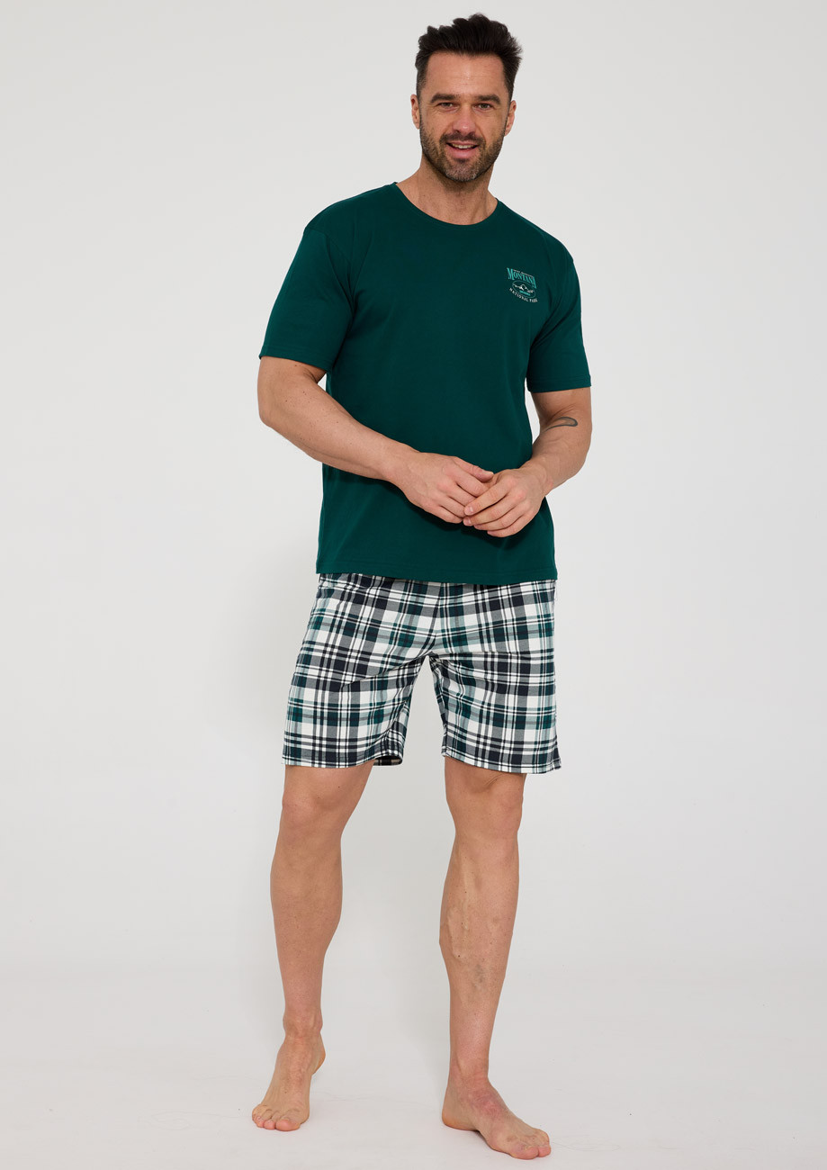 pánske pyžamo s krátkym rukávom a krátkymi nohavicami vyrobené zo 100% bavlneného úpletu - všívaná guma v páse