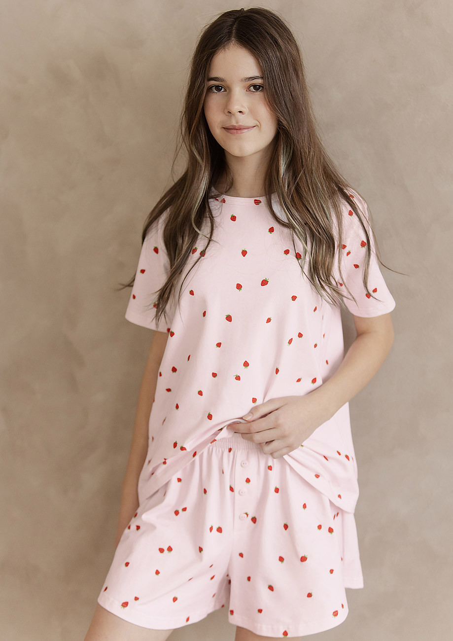 dievčenské pyžamo s krátkym rukávom a krátkymi nohavicami - všívaná guma v páse nohavíc.
