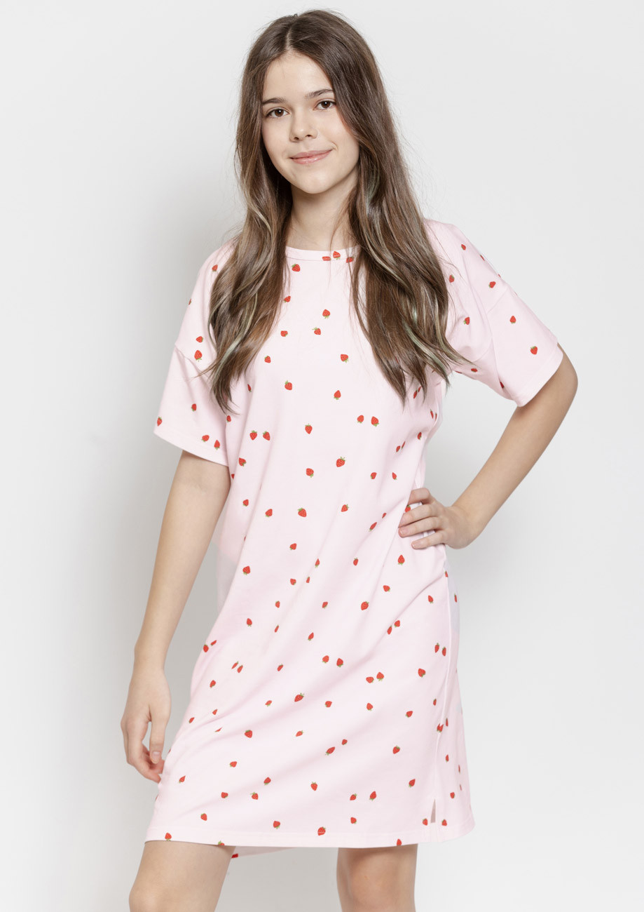 Dievčenská nočná košeľa s krátkym rukávom vyrobená z úpletu zo 100% bavlny.