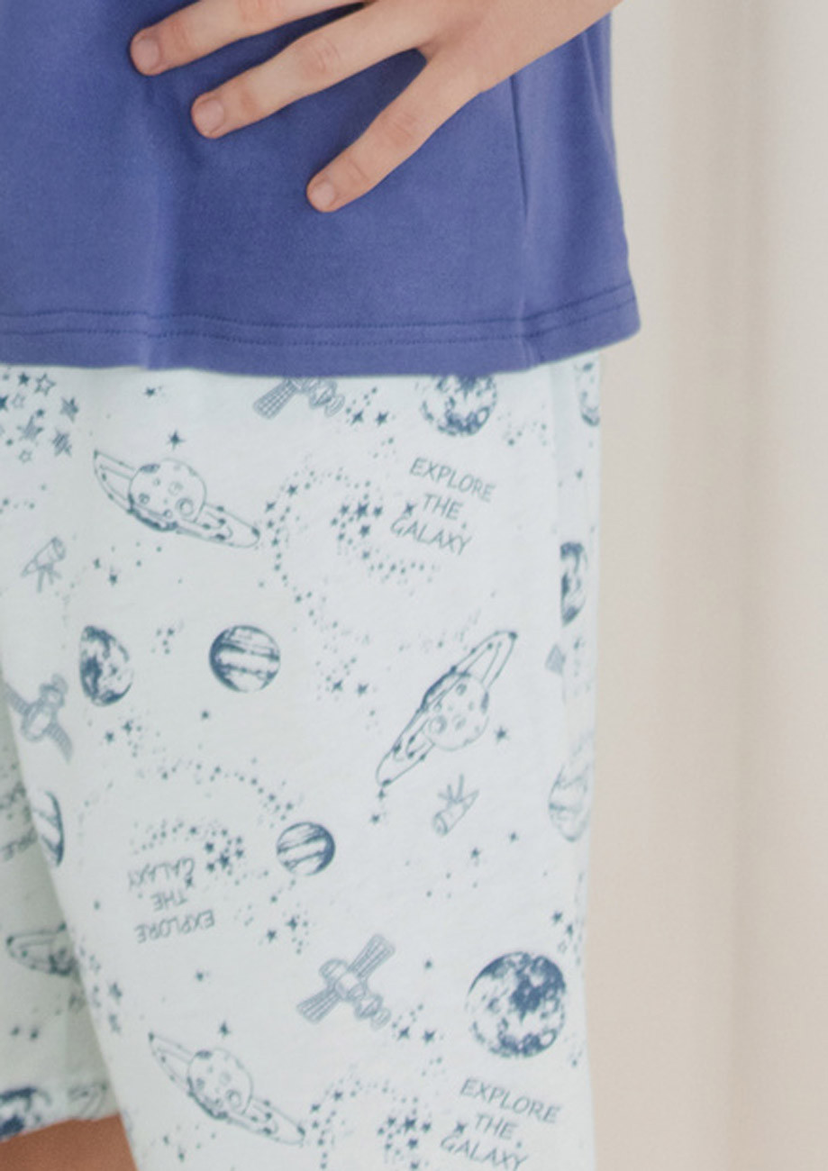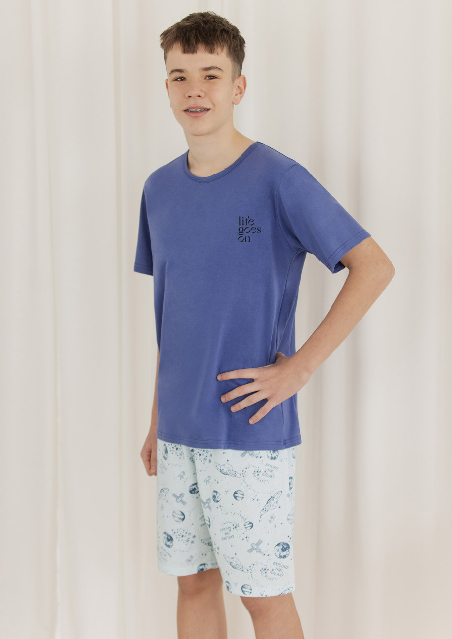 chlapčenské pyžamo s krátkym rukávom, krátke nohavice - všívaná guma v páse nohavíc.