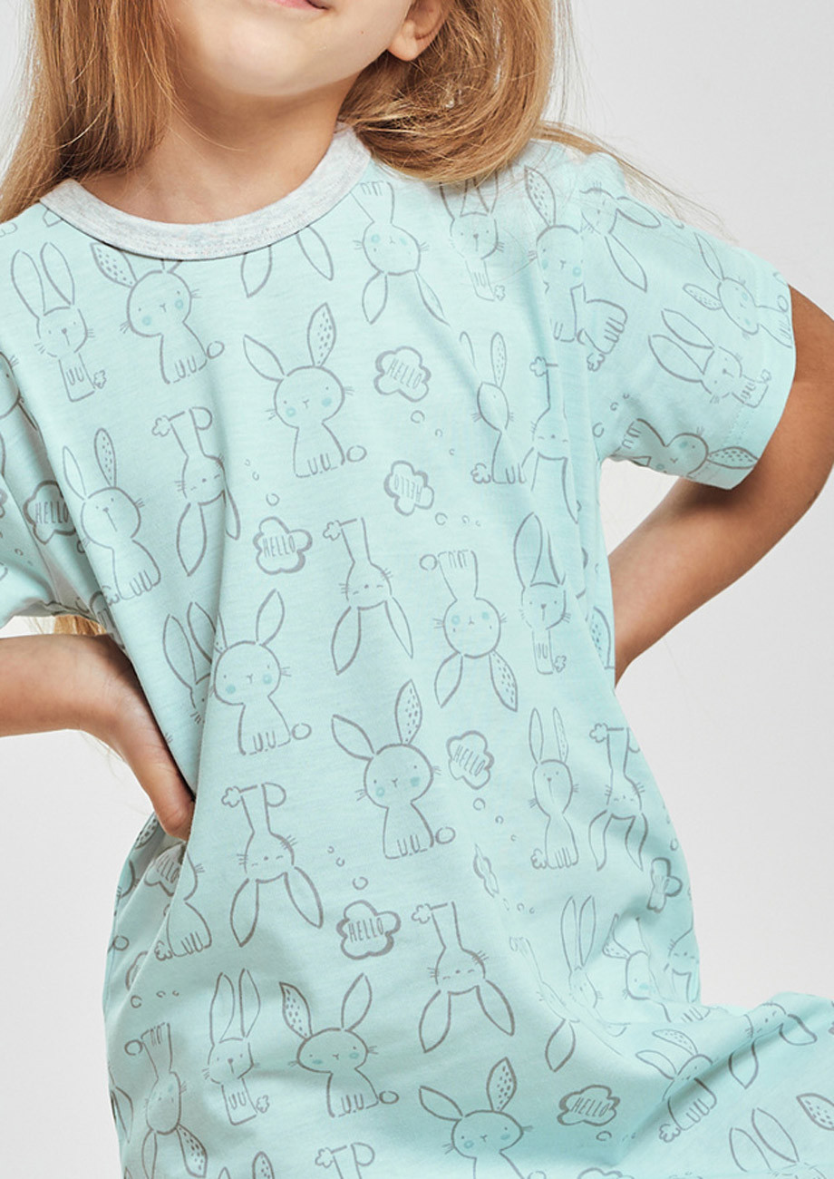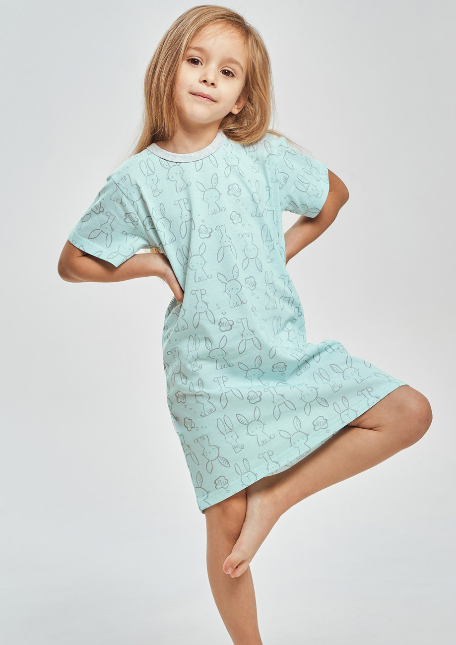 Dievčenská nočná košeľa s krátkym rukávom vyrobená z úpletu zo 100% bavlny.