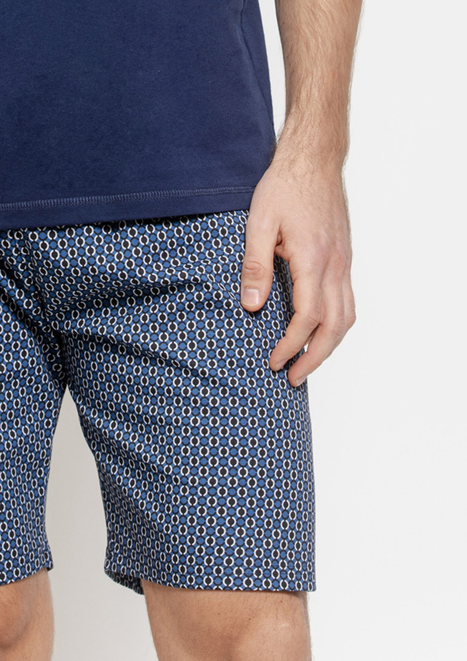 Pánske pyžamo s krátkym rukávom a krátkymi nohavicami vyrobené z úpletu zo 100% bavlny. Pohodlná široká všívaná guma v páse nohavíc.