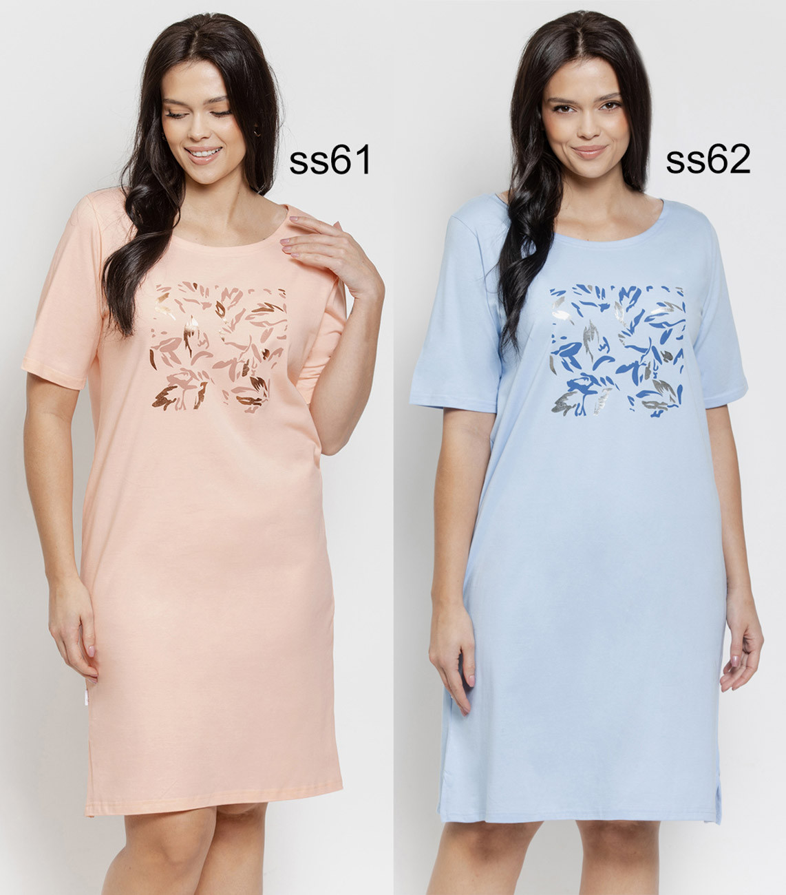 Dámska nočná košeľa s krátkym rukávom vyrobená z úpletu zo 100% bavlny.