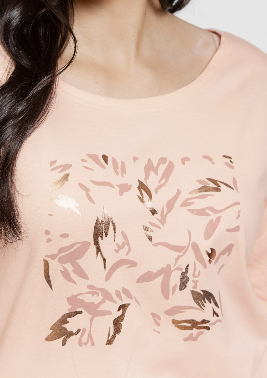 Dámska nočná košeľa s krátkym rukávom vyrobená z úpletu zo 100% bavlny.