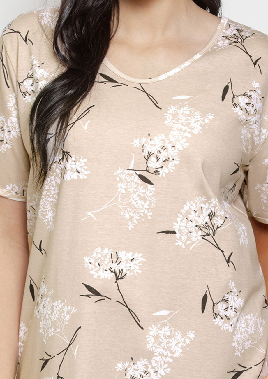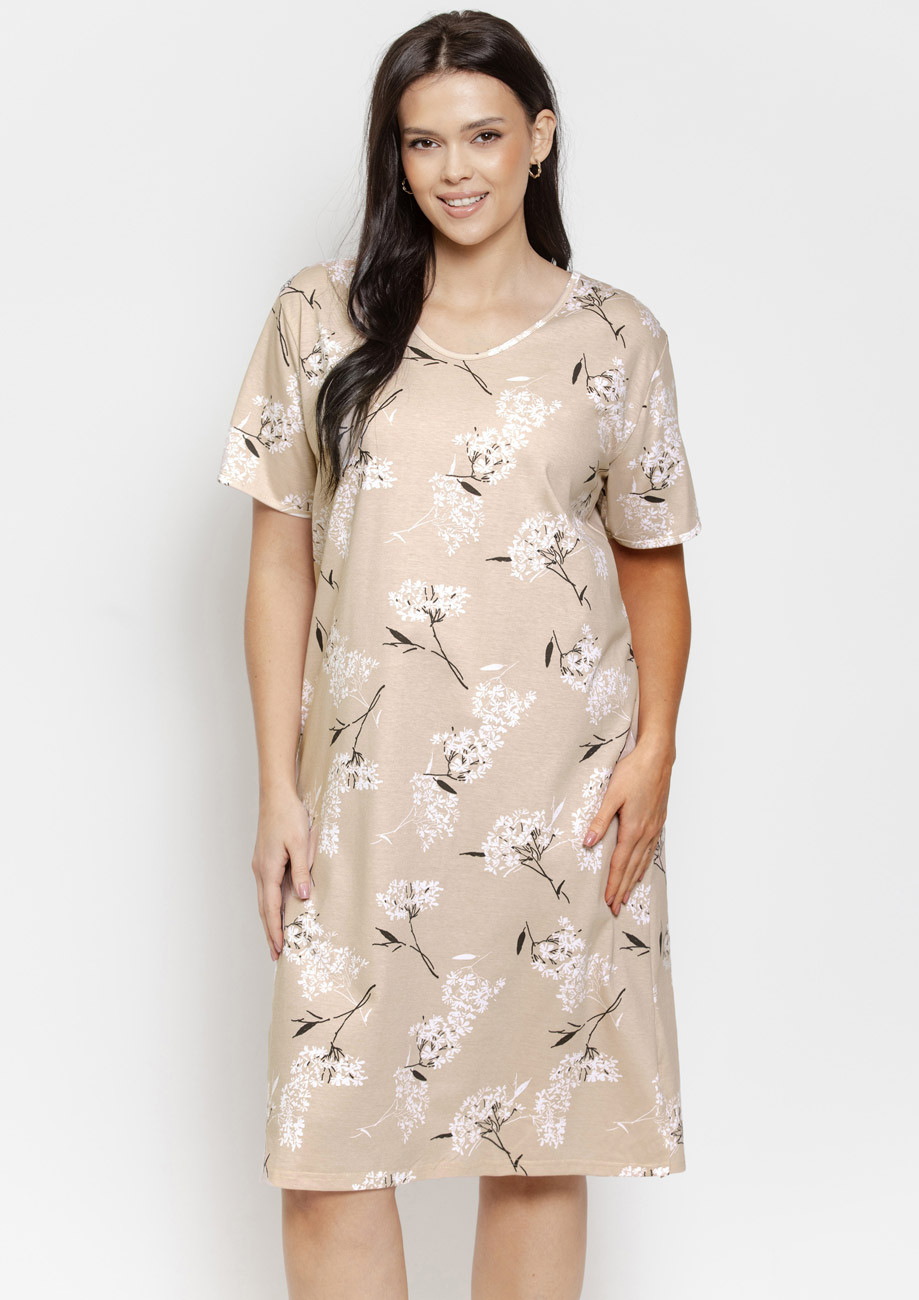 Dámska nočná košeľa s krátkym rukávom vyrobená z úpletu zo 100% bavlny.