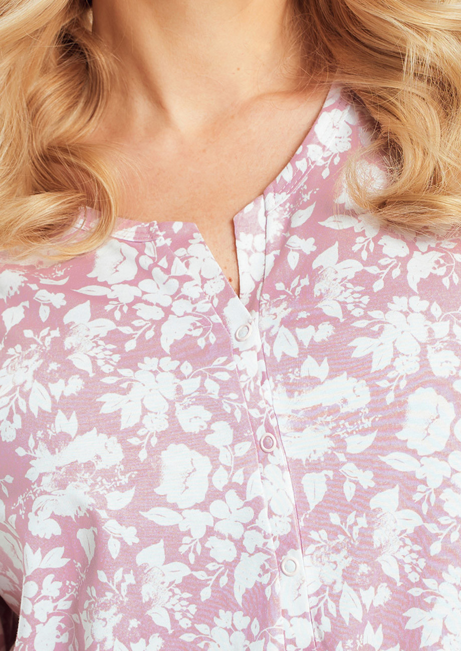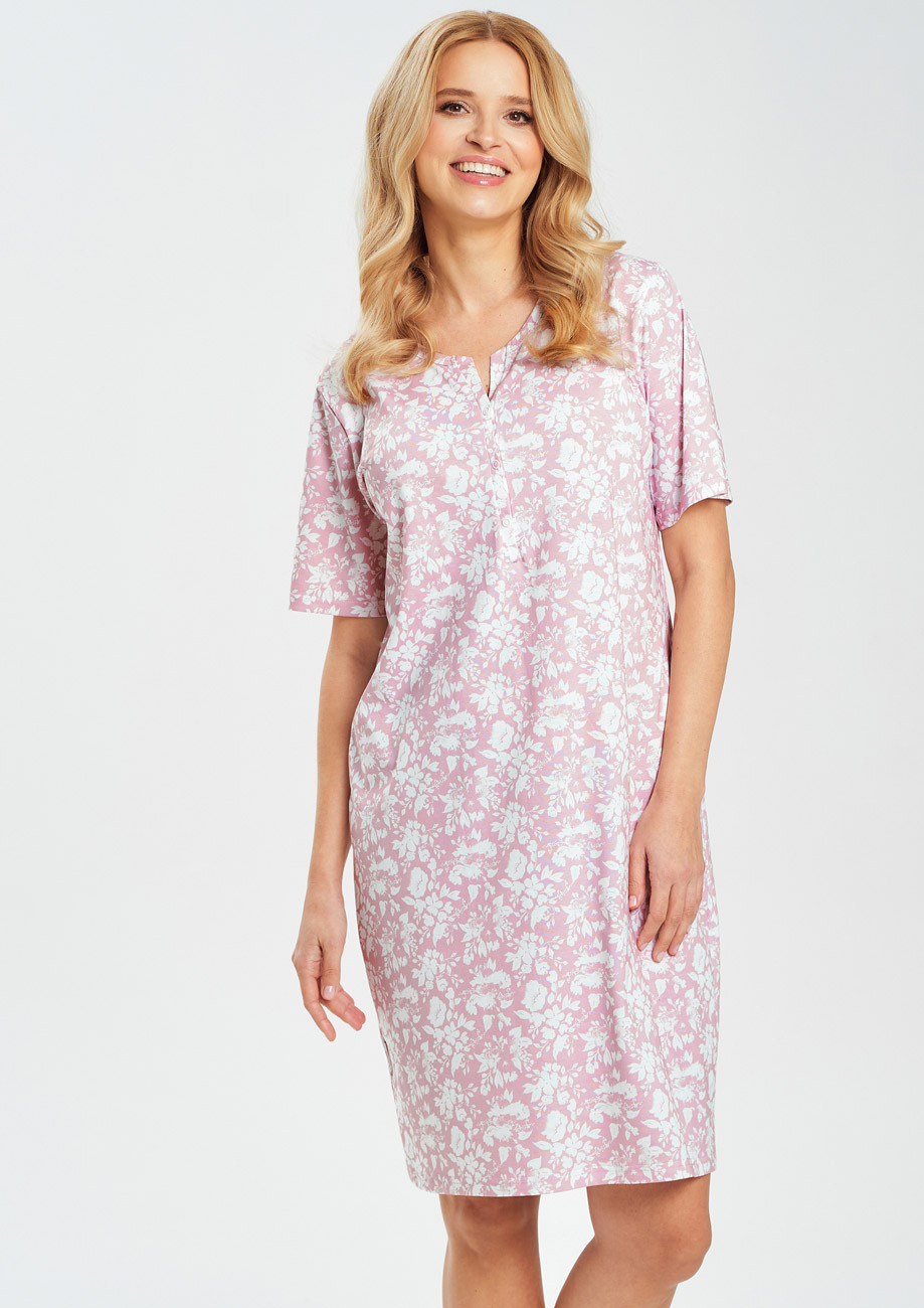 dámska nočná košeľa s krátkym rukávom a rozopínacou légou vyrobená z bavlneného úpletu