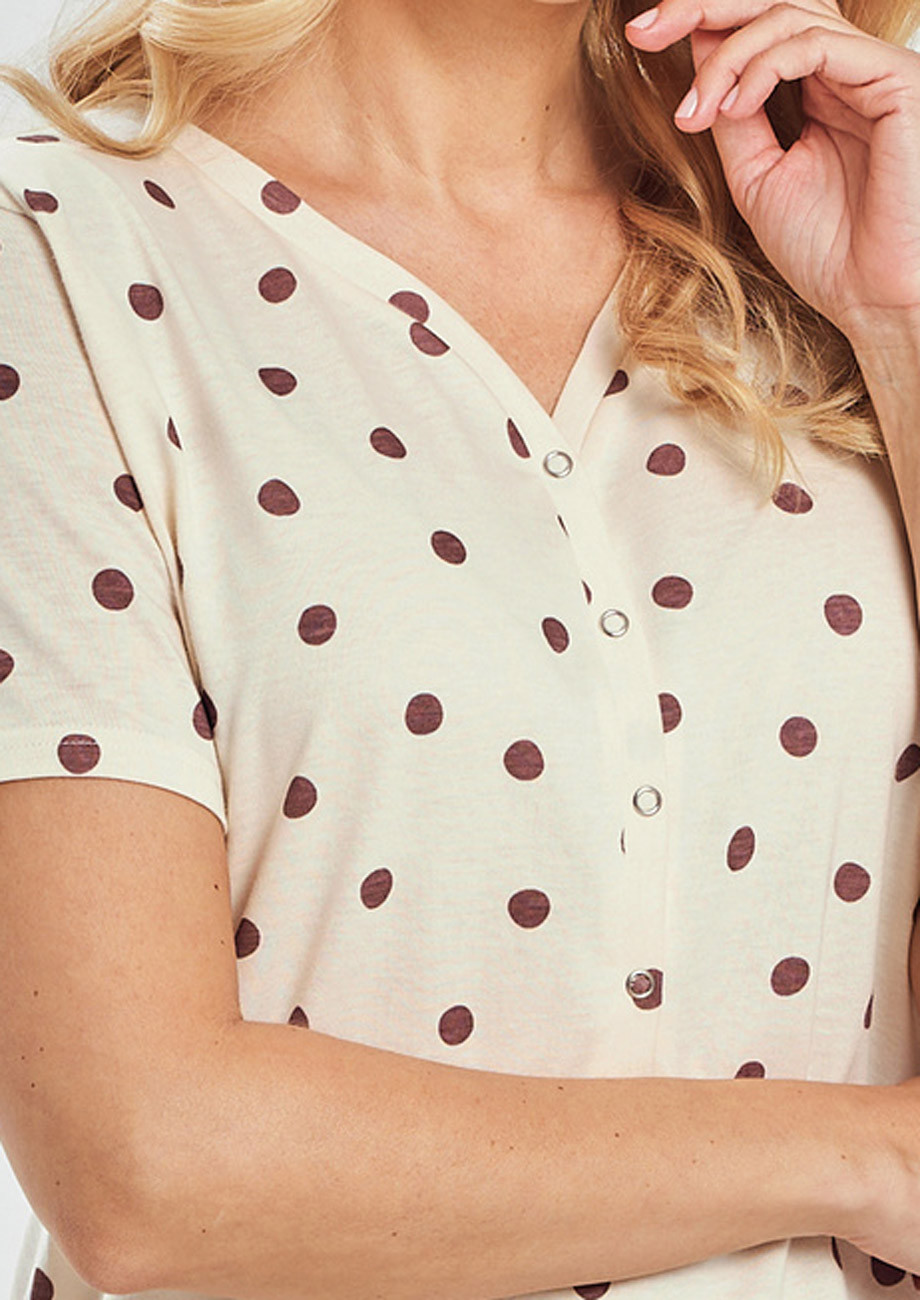 dámska nočná košeľa s krátkym rukávom a rozopínacou légou vyrobená z bavlneného úpletu