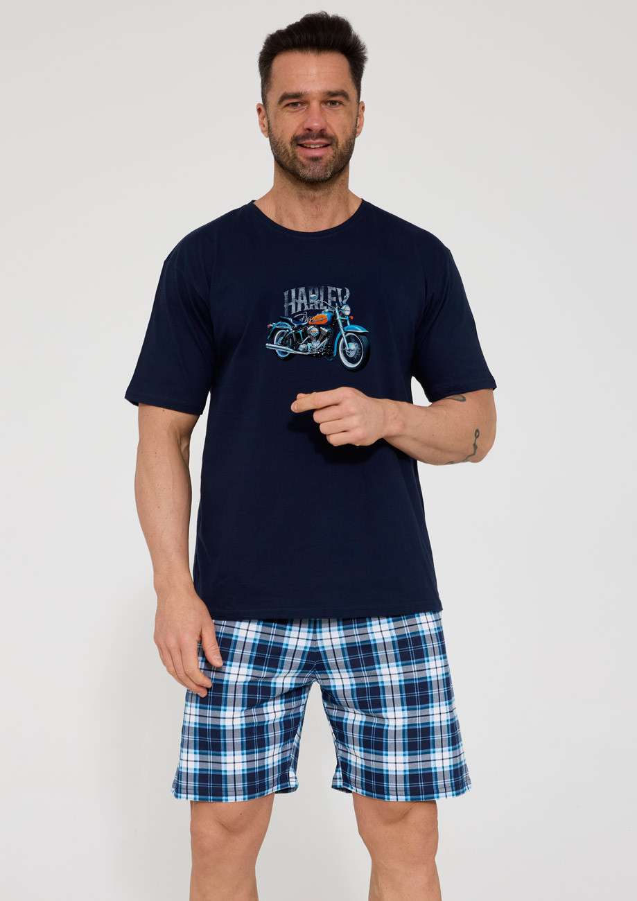 Pánske pyžamo s krátkym rukávom a krátkymi nohavicami vyrobené zo 100% bavlneného úpletu - všívaná guma v páse.