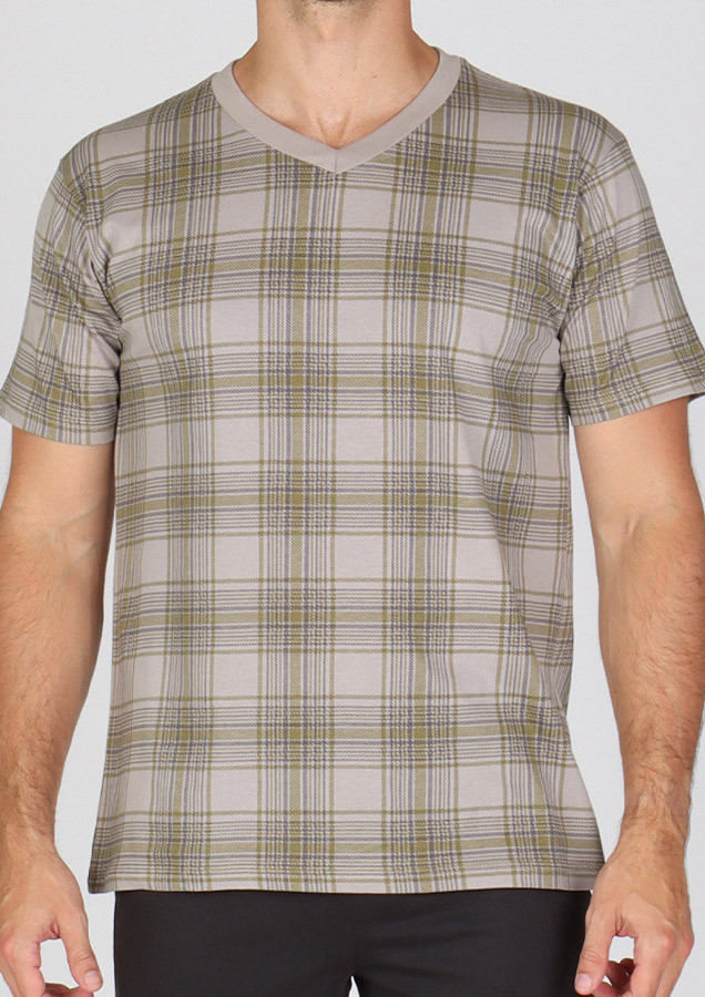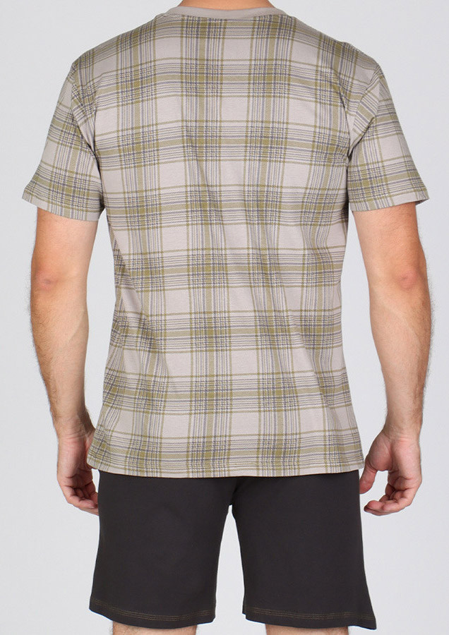 Pánske pyžamo s krátkym rukávom a krátkymi nohavicami vyrobené zo 100% bavlneného úpletu, všívaná guma v páse nohavíc