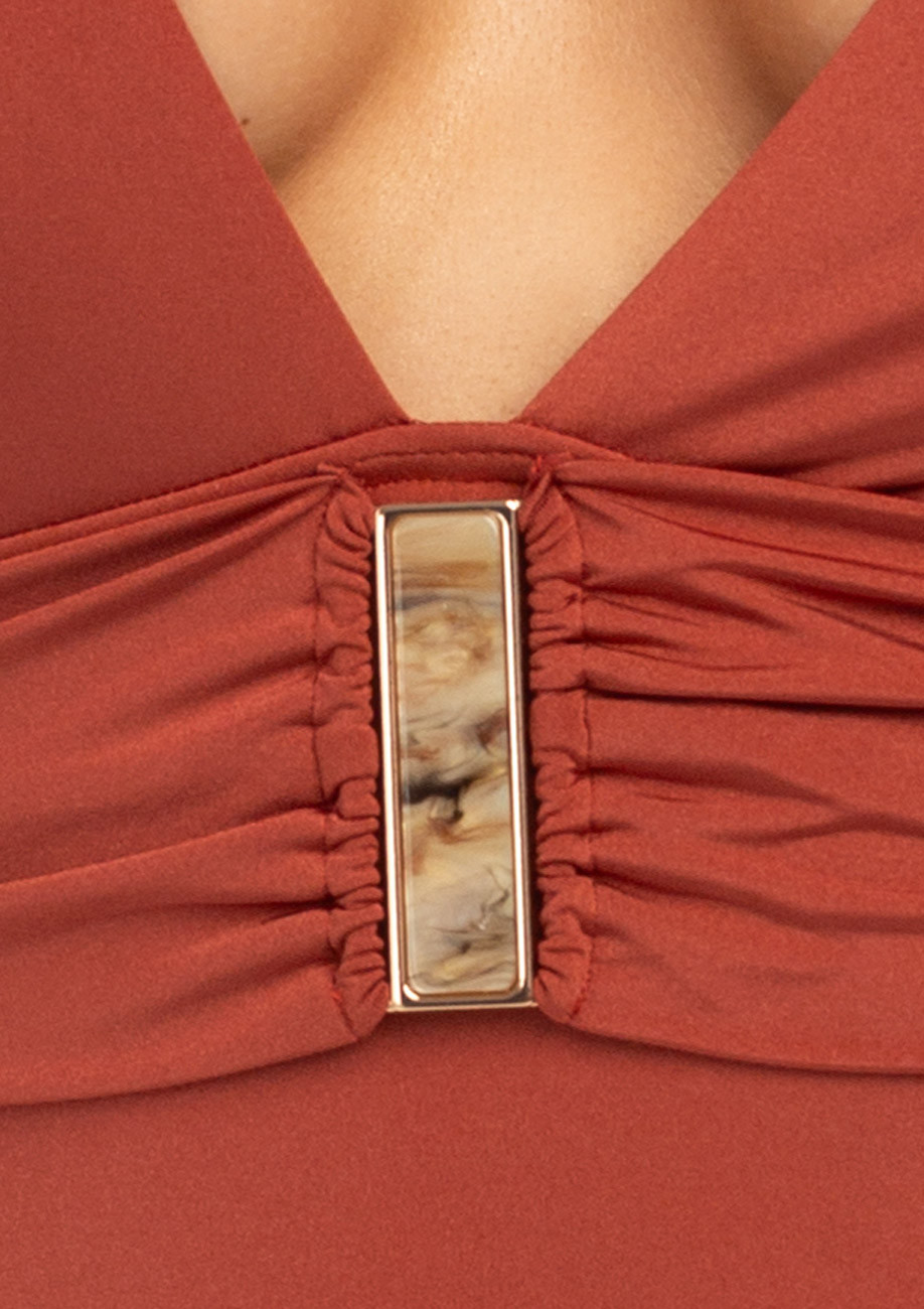 Jednodielne plavky Amber sú synonymom sofistikovanosti. Premyslené prešívanie a metalický lesk materiálu vytvárajú luxusný dojem, ktorý na pláži nikto neprehliadne. Tento model je navrhnutý tak, aby zvýraznil prednosti a zároveň diskrétne zakryl drobné nedokonalosti vďaka rafinovanému riaseniu v oblasti pása.