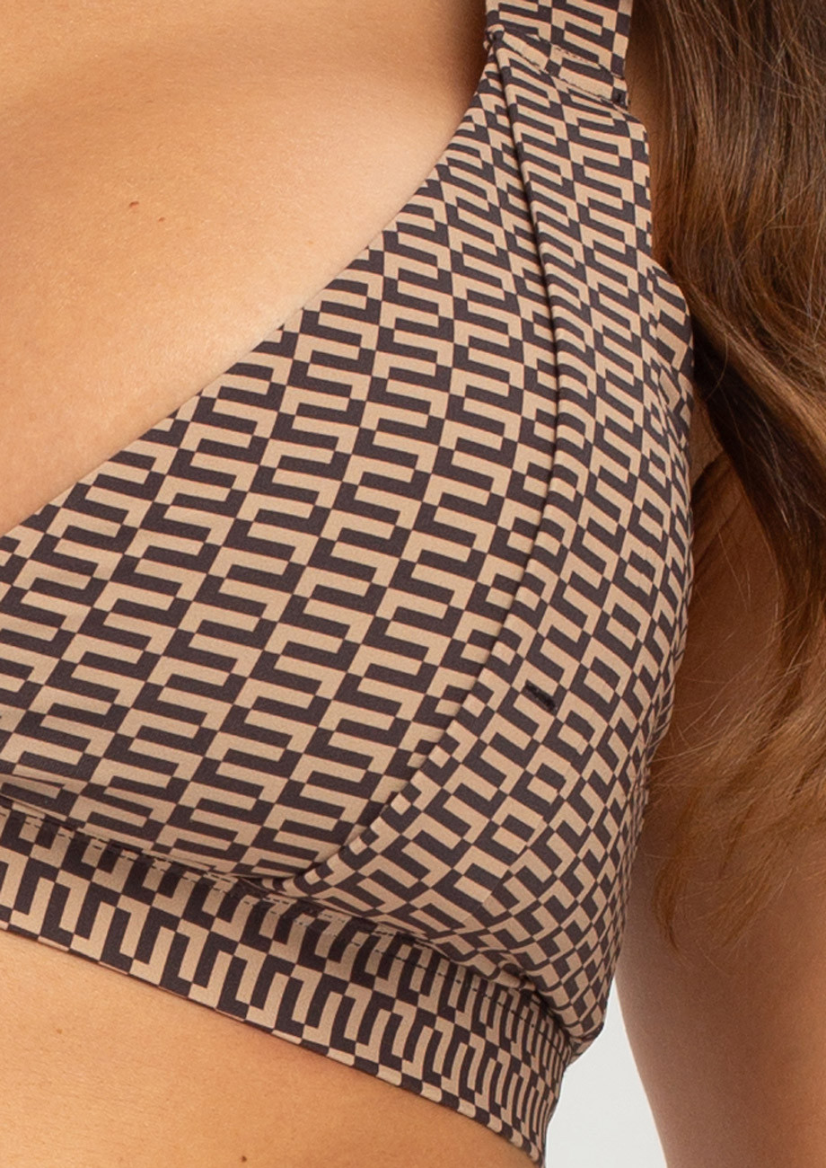 Moderný, sebavedomý a nezameniteľný. Horný diel plaviek Brand s ikonickým logovaním je určený pre milovníčky logománie. Športovo-elegantný strih s pevným obvodom zaručuje pohodlie, zatiaľ čo ich farebná kombinácia pôsobí športovým a luxusným dojmom zároveň.