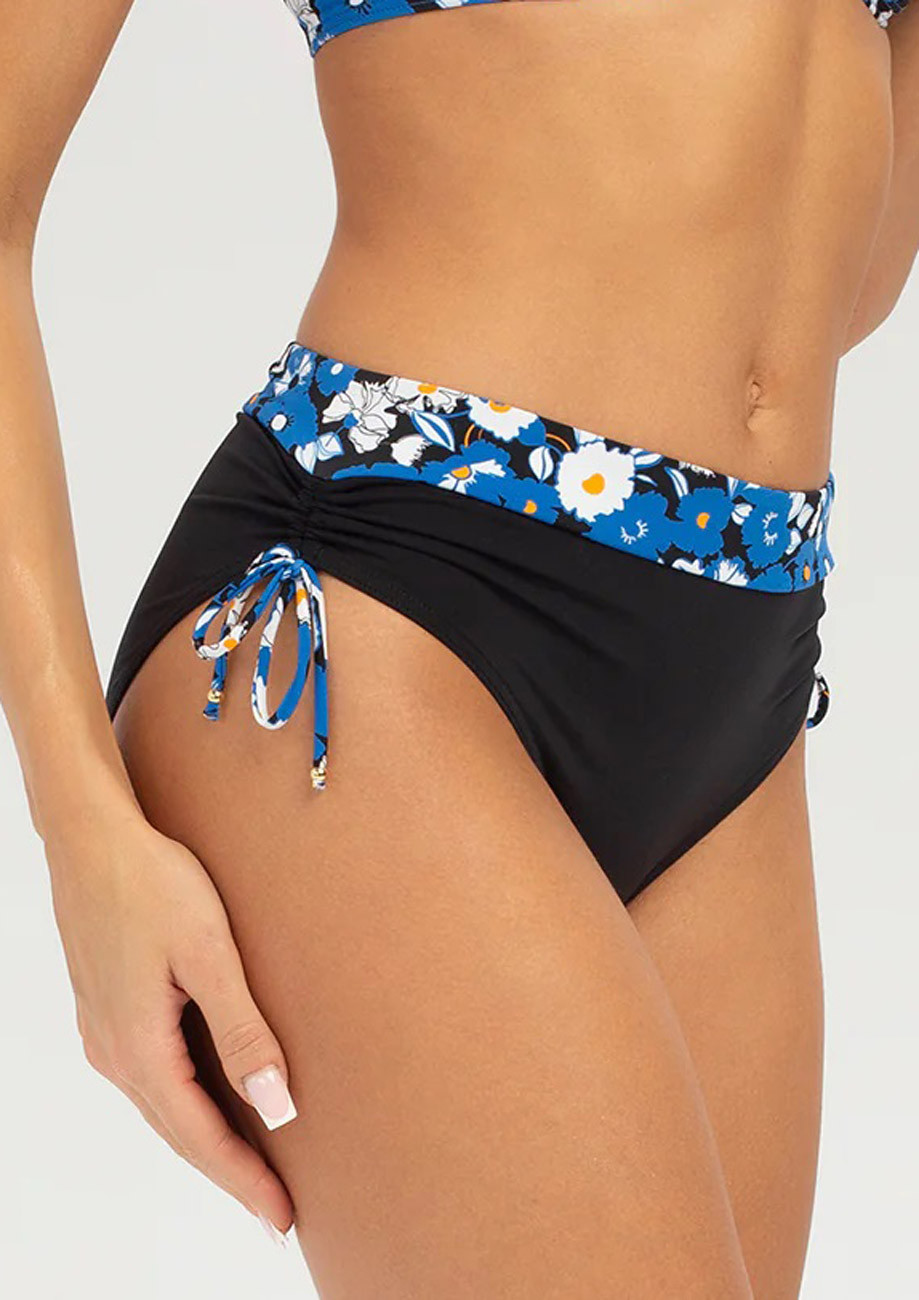 Nohavičky Kama s bočným riasením sú skutočným zázrakom pre postavu. Jemné naberanie látky na bokoch umožňuje opticky korigovať šírku bokov a dodáva nohavičkám zaujímavú textúru. Tieto kvetinové nohavičky sú dokonalou polovičkou k hornému dielu Kama. Ich svieži dizajn s motívom lúčnych kvetov vás okamžite naladí na dovolenkovú vlnu.