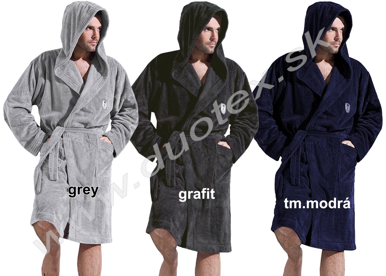 pánsky hrubý krátky zavinovací župan s kapucňou