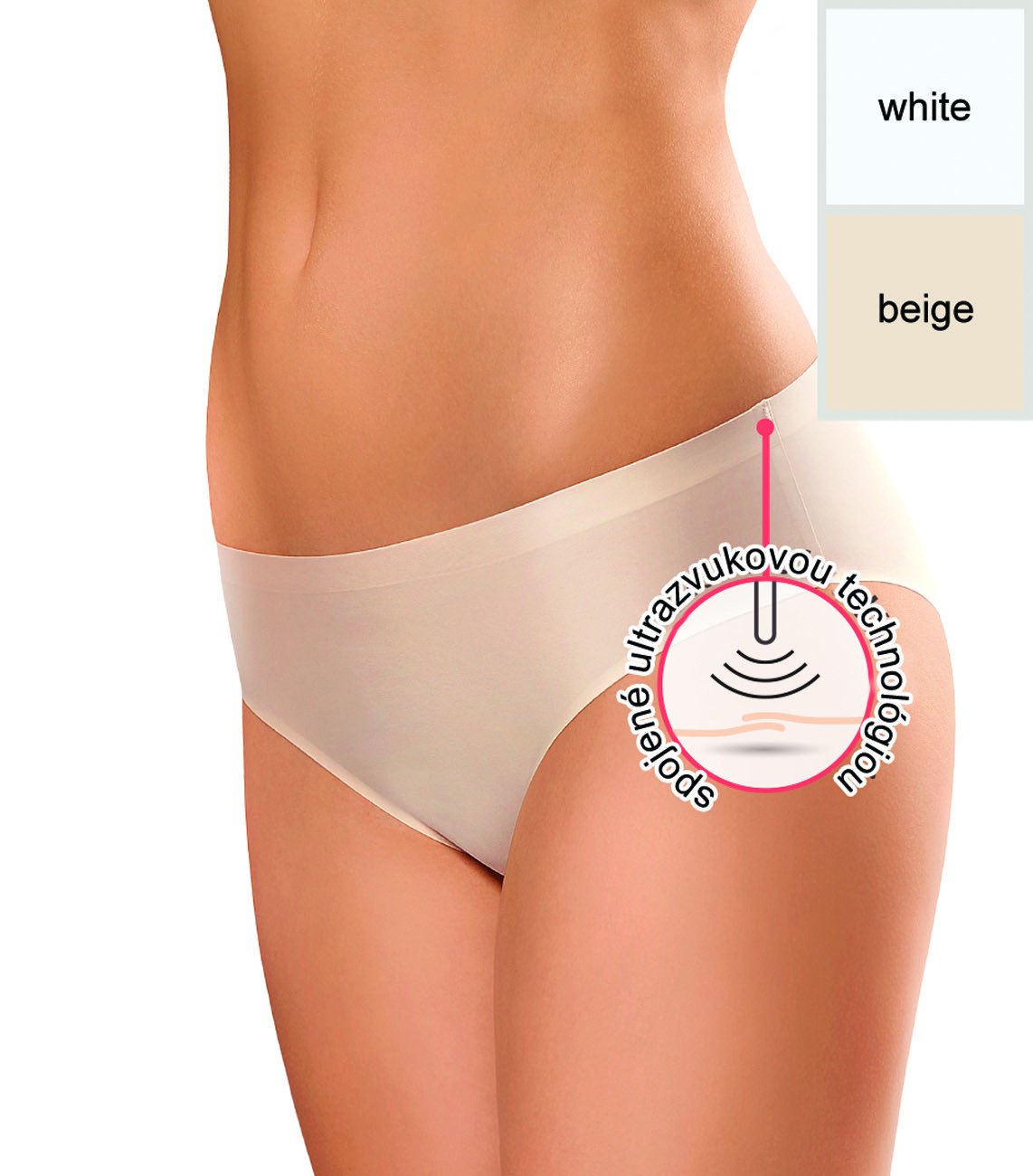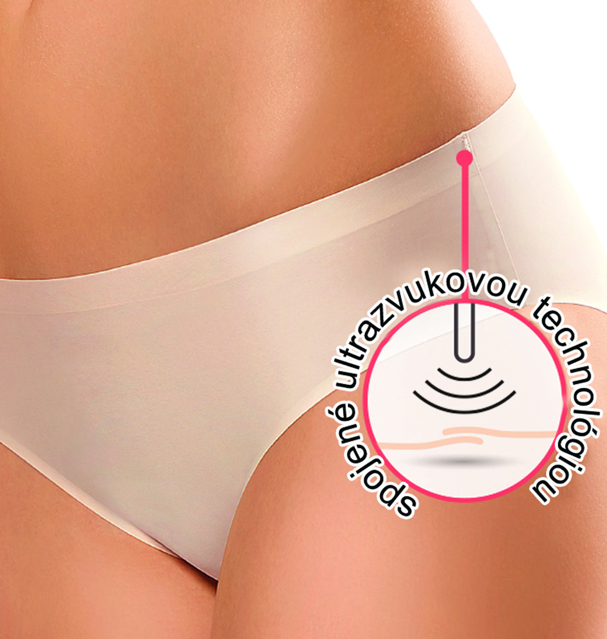 dámske komfortné elastické nohavičky s bavlneným klinom vyhotovené z tenkej mikrofibry, strihané laserom a spájané na plocho pomocou ultrazvuku, vďaka čomu sú švíky neviditeľné pod odevom. Nohavičky majú podlepené okraje, čo zabraňuje ich skrúcaniu.