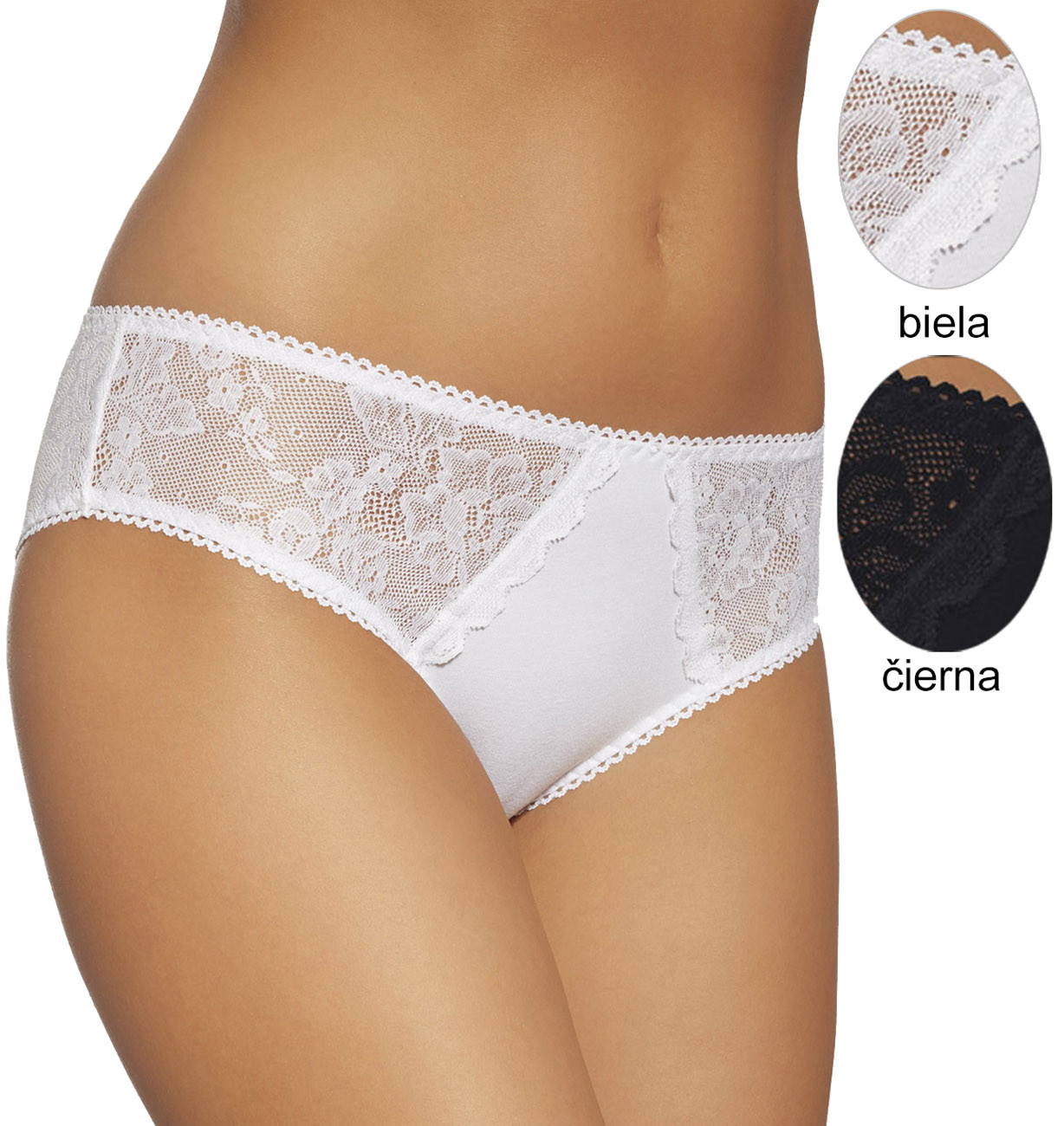 dámske nohavičky - predný aj zadný diel zhotovený kombináciou elastickej krajky a mäkkého úpletu - klasická výška bokov