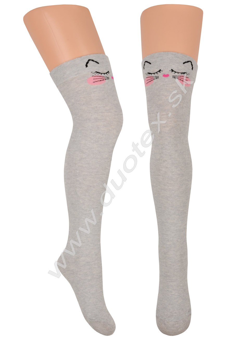 detské hladké elastické nadkolienky bez zosilnenej päty s veselým vypletaným zvieracím motívom na kolene