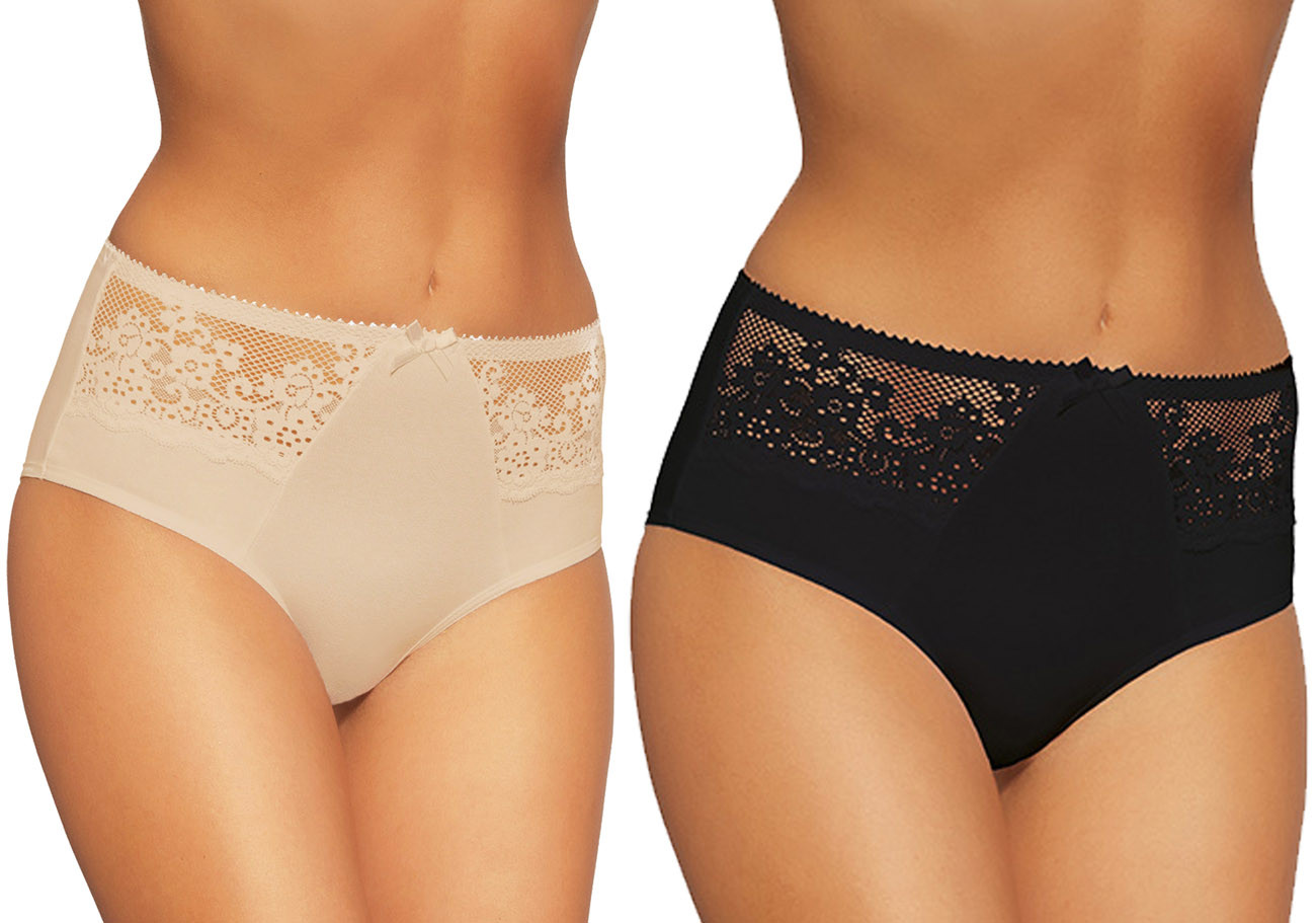 dámske nohavičky - kombinácia elastickej krajky a mäkkého úpletu, zadný diel z hladkého úpletu - s vysokými bokmi