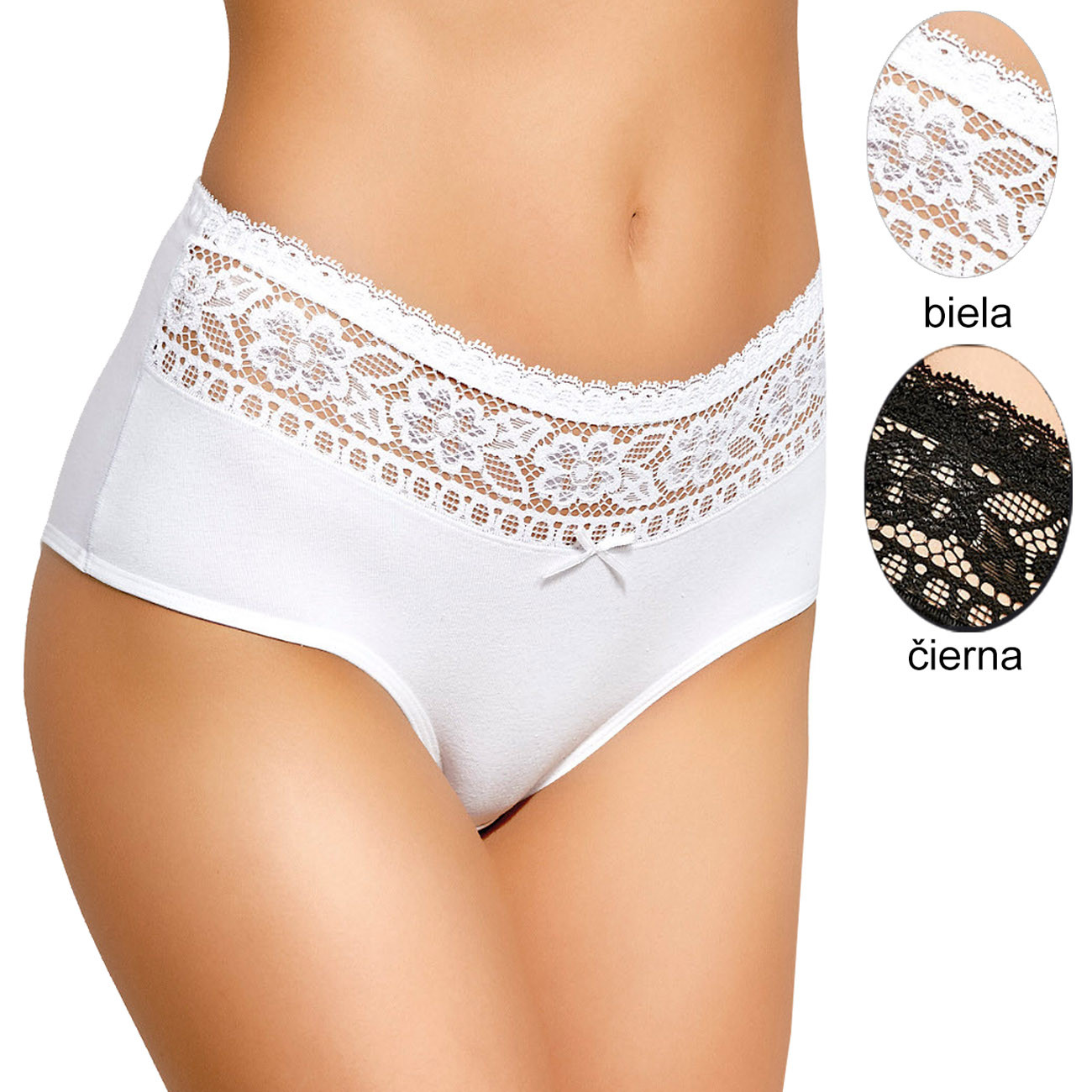 dámske nohavičky - kombinácia elastickej krajky a mäkkého úpletu, zadný diel z hladkého úpletu - s vysokými bokmi