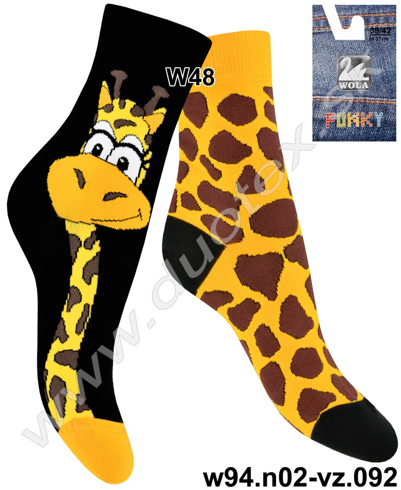 Extravagantné ponožky s výrazným farebným vzorom, pričom jeden pár ponožiek tvoria dva navzájom zladené vzory. S týmito ponožkami nesplyniete s davom - buďte originálni!