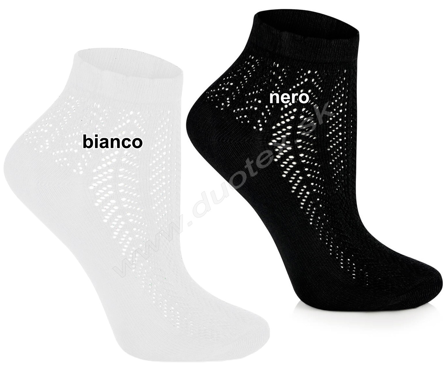 dámske jednofarebné ponožky s ažúrovým dierkovaným vzorom. Ponožky sú ukončené upravovaným netlačiacim lemom.
