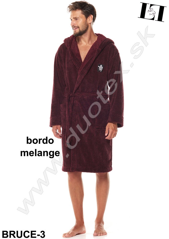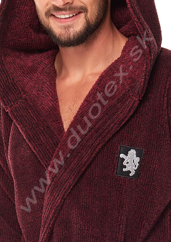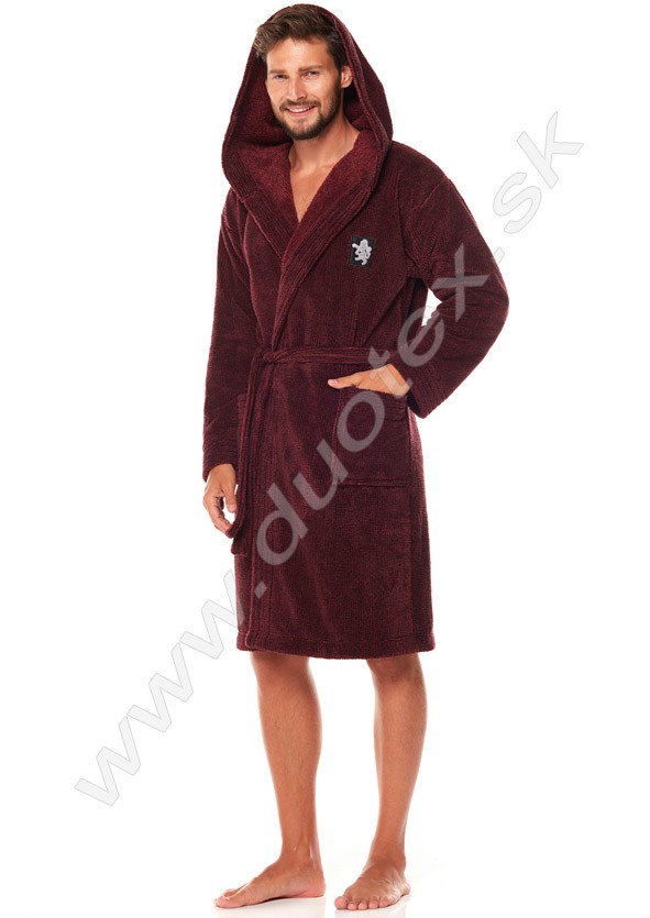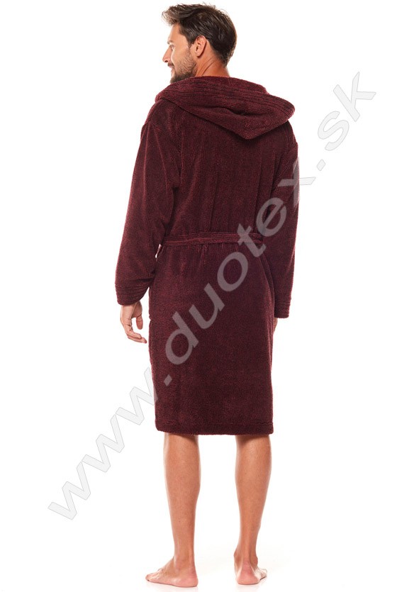 pánsky hrubý zavinovací župan s kapucňou a s našívanými vreckami