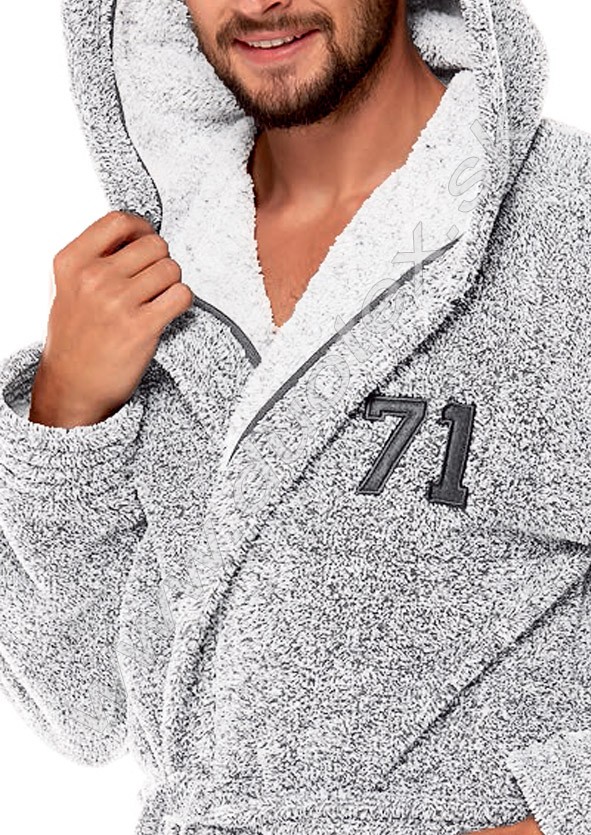 pánsky hrubý zavinovací župan s kapucňou