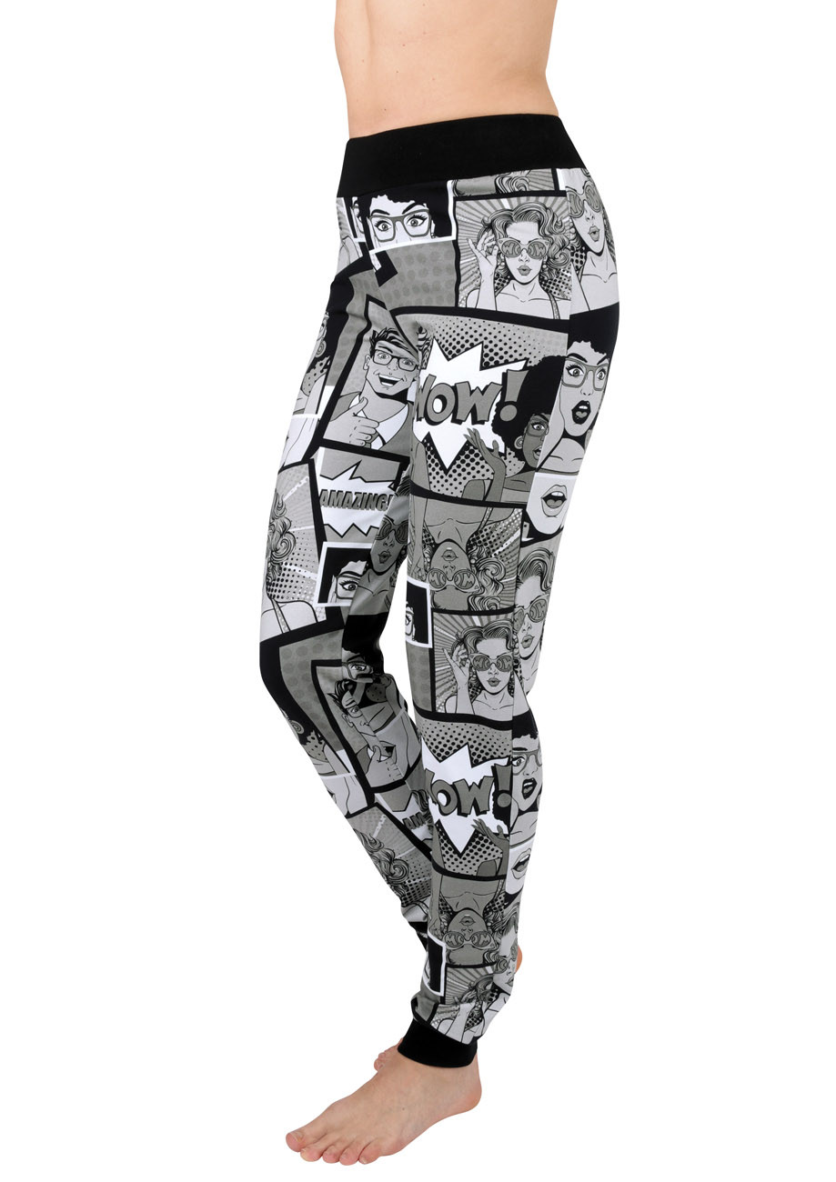 dámske bavlnené elastické vzorované športové nohavice. V spodnej časti sú nohavice stiahnuté do širokého pružného lemu, pás je riešený širokým pohodlným úpletom spevneným navliekanou širokou gumou.
